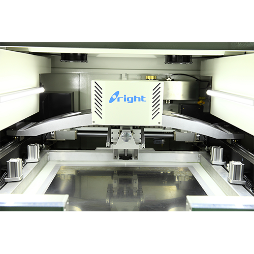 自動(dòng)調(diào)節(jié)步進(jìn)馬達(dá)驅(qū)動(dòng)的印刷頭。雙邊雙滑 系統(tǒng)。可調(diào)節(jié)亮度功能,可識(shí)別各類型的Mark點(diǎn),焊點(diǎn)、