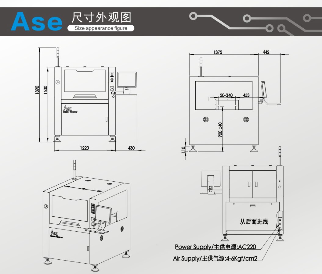 機(jī)器外形尺寸 | 1220(L)X1355(W)X1500(H)mm | |