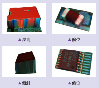 檢查項(xiàng)目 | 元件類 | 錯(cuò)件,缺件,極性,偏位,翻件,破損,IC彎腳,IC翹腳,異物,浮高,傾斜、立碑等 | ||